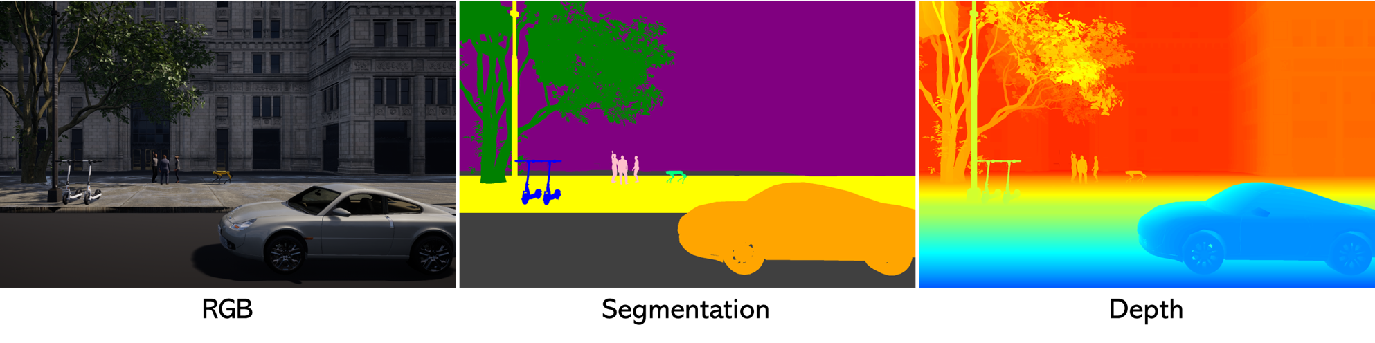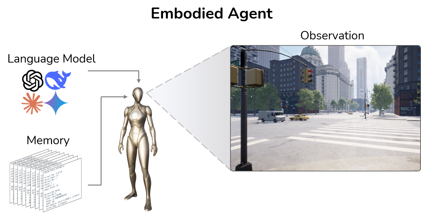 Agents can receive multimodal observations like RGB, depth, segmentation, and maps.